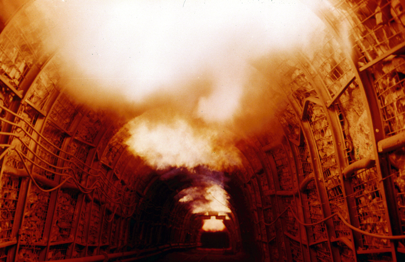 Durch den Zündvorgang wurde ein Teil des abgelagerten Kohlenstaubs aufgewirbelt, ein Teil fiel zur Streckensohle. Der aufgewirbelte Kohlenstaub (rd. 500 g) ergab einen Feuerball, der den gesamten Streckenquerschnitt ausfüllte (siehe Bild 1). Der Versuch demonstrierte jeweils sehr eindeutig die Gefahr, die von geringen Mengen an Kohlenstaub ausgehen kann.