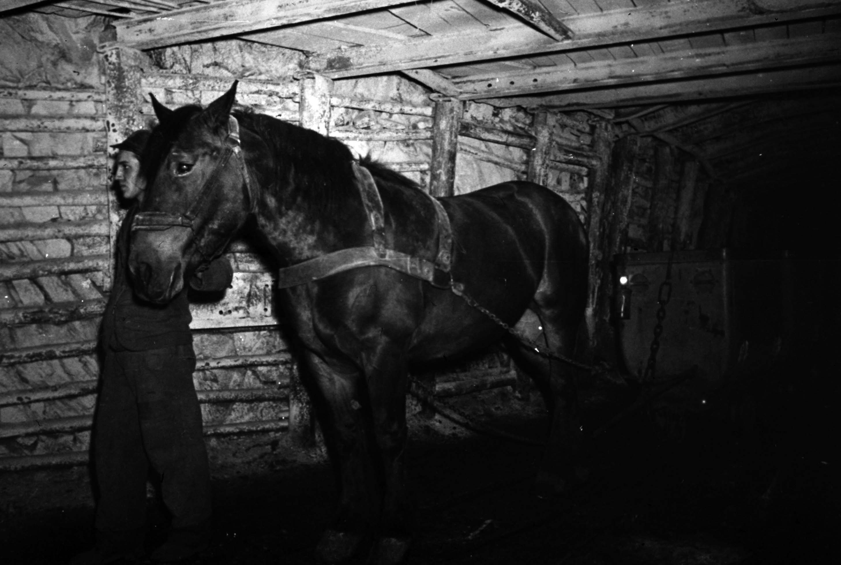 Die 1939 noch vorhandenen drei Pferde kommen allerdings samstags zu Tage und werden montags früh wieder nach untertage gebracht. Der letzte "Einhufer", so nennt die Bergbehörde an einer Stelle Pferde, zieht noch im Jahre 1958 Grubenberge und Material auf der 700m- Sohle in den Querschlägen 4 Ost-Nord und 5 Ost-Süd.
